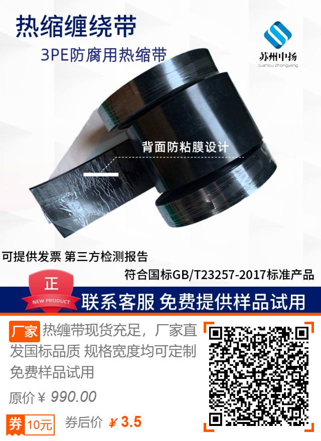 這幾種產(chǎn)品都是3PE防腐材料,是目前管道防腐最常用的產(chǎn)品,熱縮帶主要用于管道補口焊接后的防腐施工,熱縮套是需要在管道焊接前套上的防腐材料,熱縮纏繞帶是針對于彎管,三通,少量直管等防腐,當(dāng)然這幾種產(chǎn)品的應(yīng)用場景都很廣泛,比如儲罐外防腐,碼頭樁把防腐,閥門,變徑管防腐等,可根據(jù)具體施工現(xiàn)場要求來確認(rèn)使用。