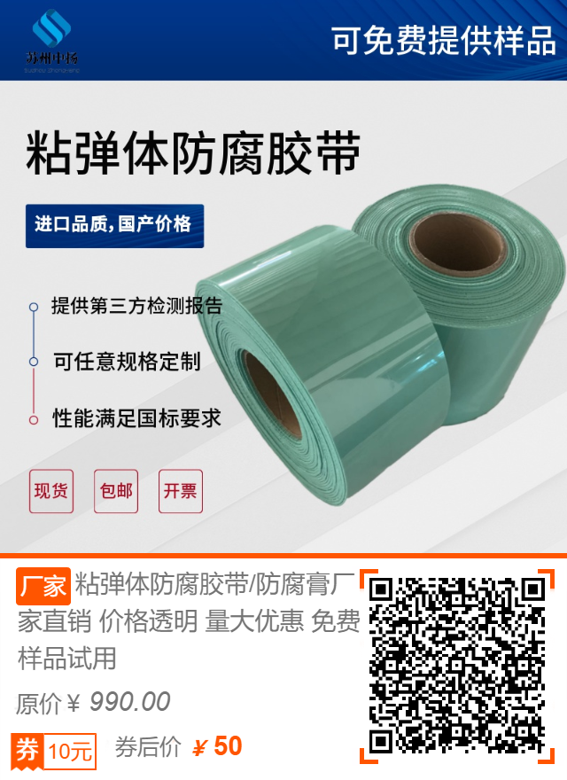 使用粘彈體防腐膠帶進(jìn)行纏繞包裹,纏繞時需跟兩端原有防腐層搭接100mm。
