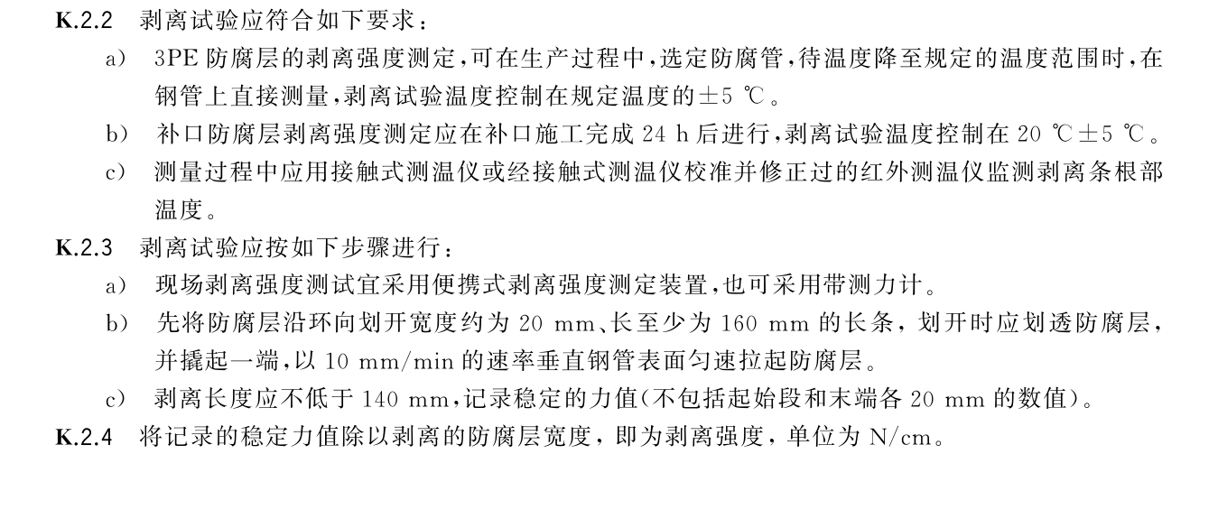 最關(guān)鍵的還是剝離強度測試,按國標要求,是剝離強度≥50N/每公分并80%表面呈內(nèi)聚破壞狀。剝離時的管體溫度是15-25℃,環(huán)境溫度這一點很重要,之前有項目就是施工單位大夏天頂著太陽底下做剝離,鋼管表面溫度曬到了50多℃,常溫的熱縮帶,膠層都曬軟了。